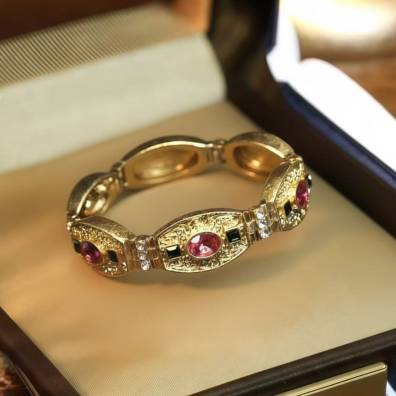 Antique-Gilt Relief Plaque · Zircon Bracelet