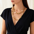 Gold-plated chains and floral accents add a layer of luxury to the design.