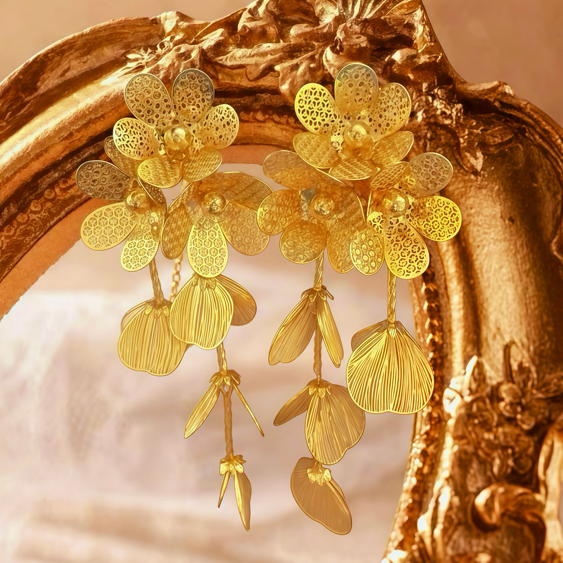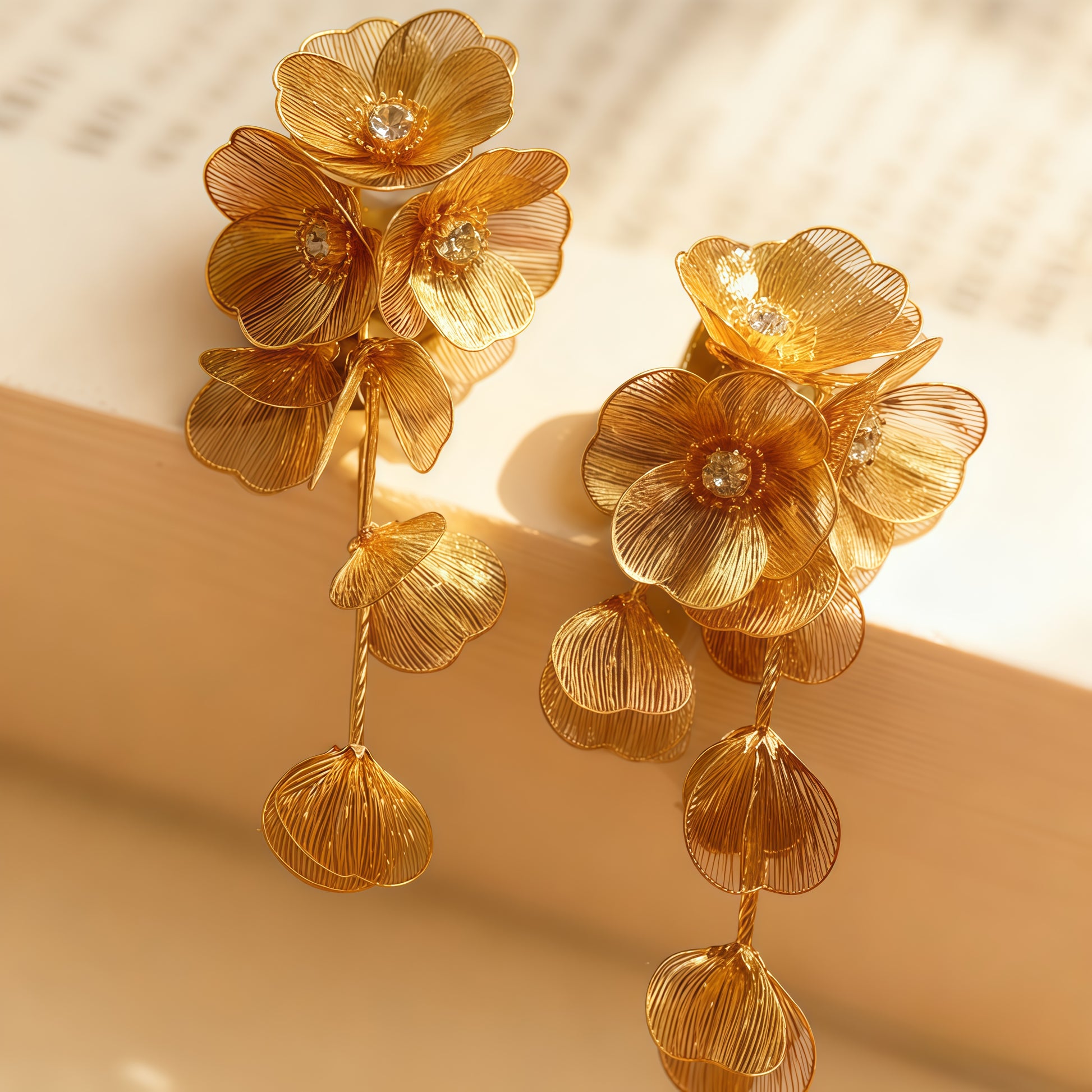 Gilt Wire-Engraved · Crystal-Stamen Cascade Studs