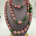 Speckled pink and deep-green ceramic beads are kiln-glazed for lasting color.