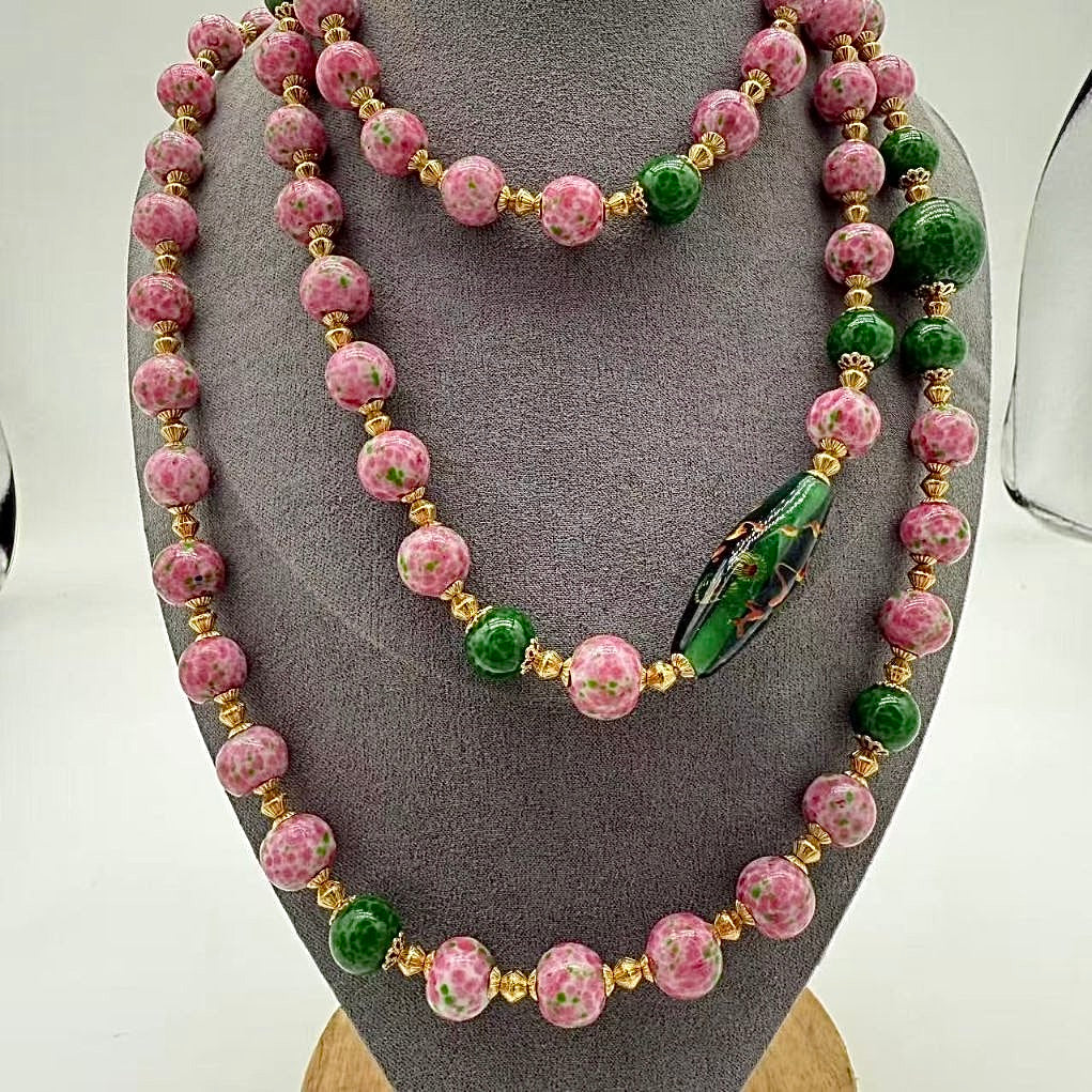 Kiln-Glazed Ceramic Beads · Cloisonné Tube Long Necklace