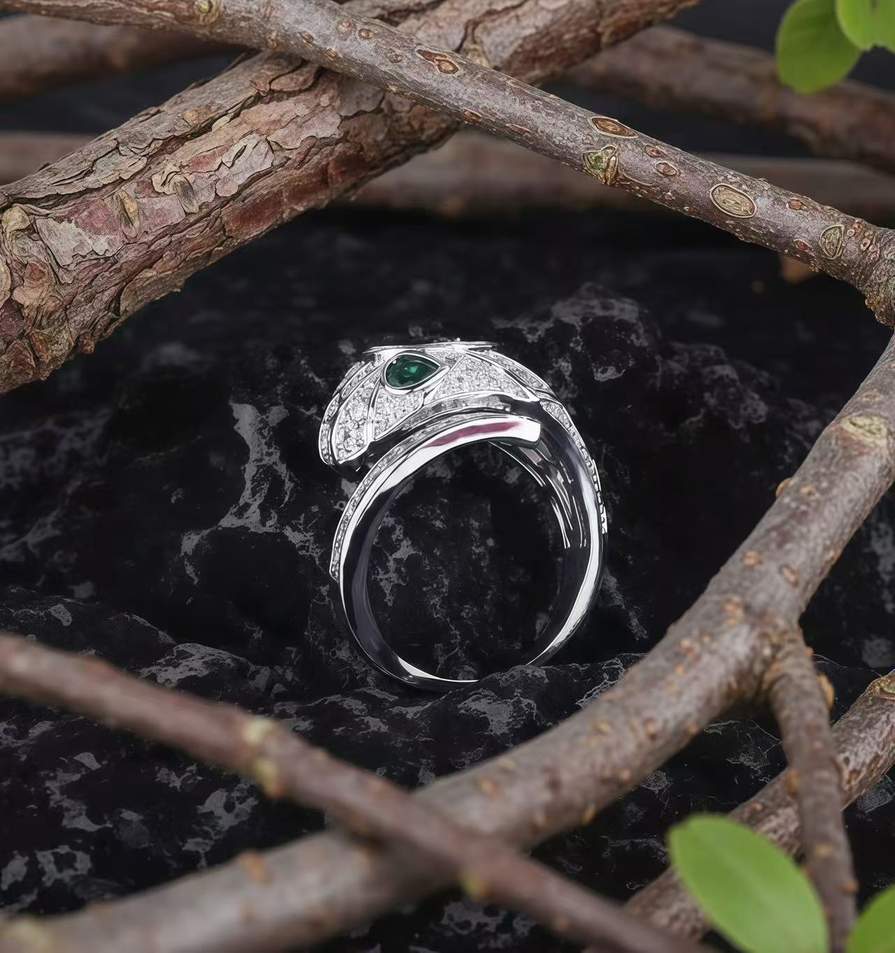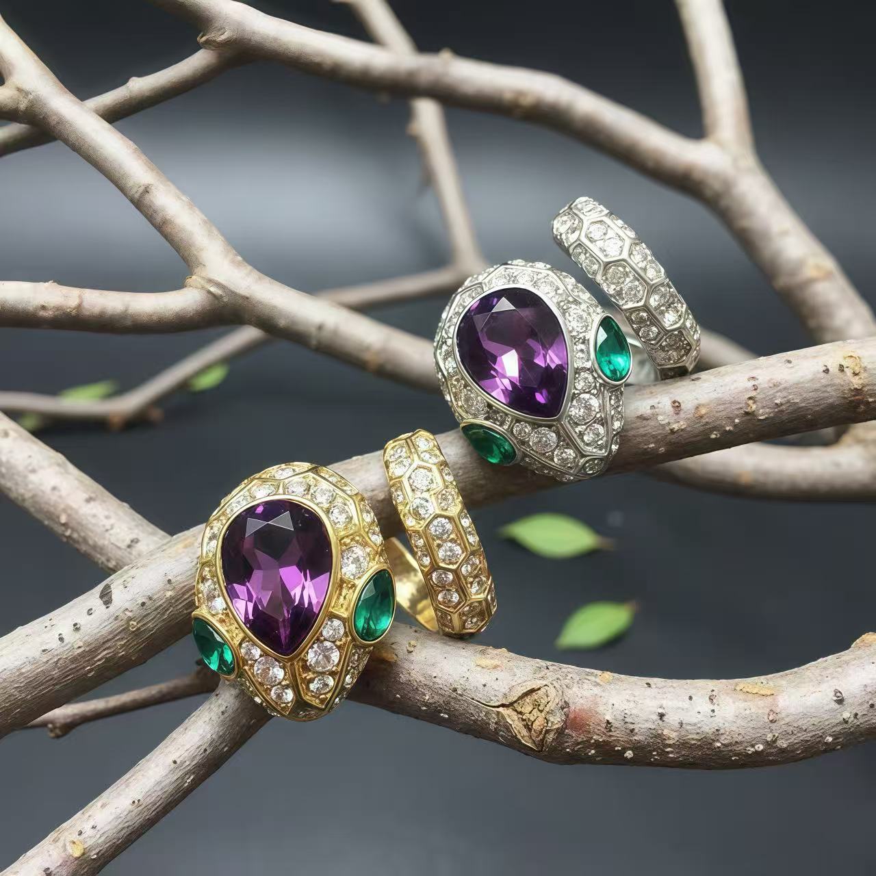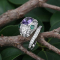 White-Gilt CZ · Amethyst-Heart & Emerald Eyes Serpent Ring